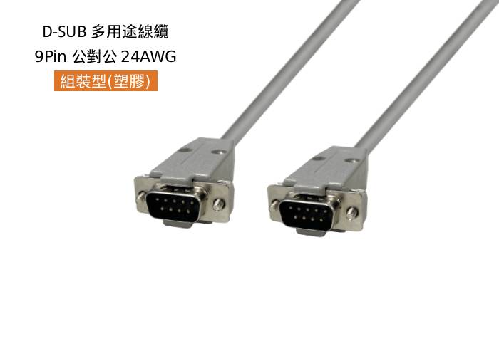 D-SUB 多用途線纜, 組裝型-塑膠殼, 9 Pin,公 180°對公 180°,24AWG,#4-40,短固定螺絲, 灰色外被,4米