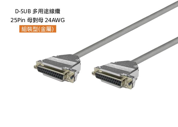 D-SUB 多用途線纜, 組裝型-金屬殼, 25 Pin,母 180°對母 180°,24AWG,#4-40,短固定螺絲, 灰色外被,4米