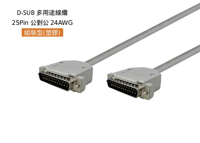 D-SUB 多用途線纜, 組裝型-塑膠殼, 25 Pin,公 180°對公 180°,24AWG,#4-40,短固定螺絲, 灰色外被,4米