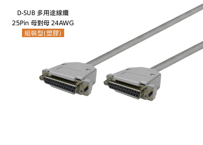 D-SUB 多用途線纜, 組裝型-塑膠殼, 25 Pin,母 180°對母 180°,24AWG,#4-40,短固定螺絲, 灰色外被,4米