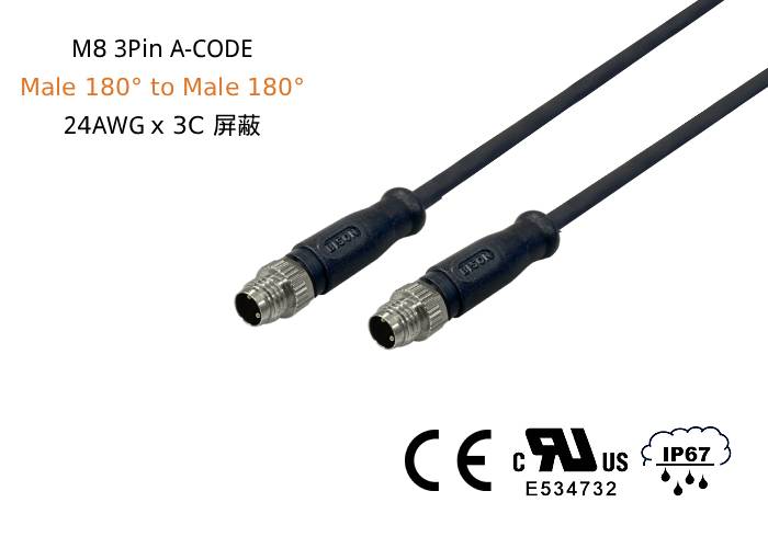 - 連接器 2.:M8 3P A-Coded 圓形公連接器180度