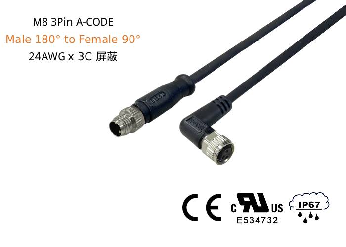 - 連接器 1.:M8 3P A-Coded 圓形公連接器180度