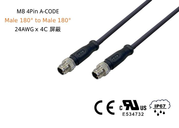 - 連接器 1.:M8 4P A-Coded 圓形公連接器180度