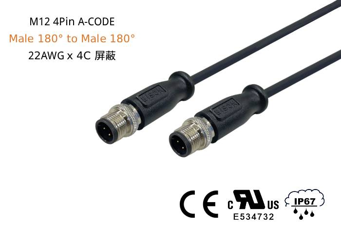 - 連接器 1.:M12 4P A-Coded 圓形公連接器180度